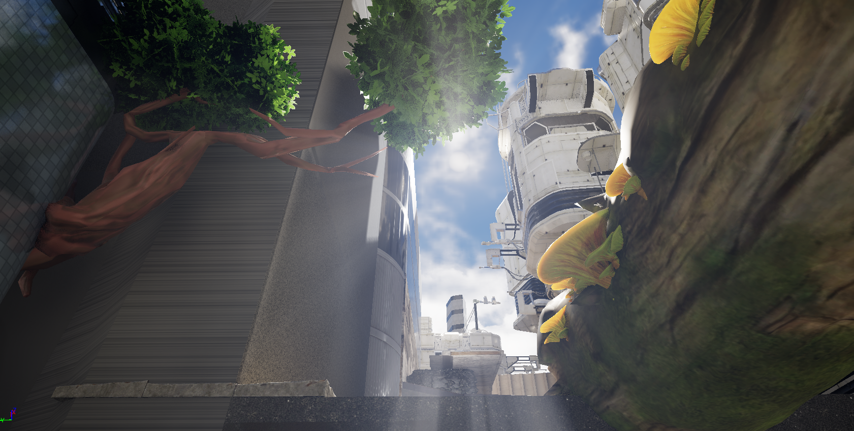 Lobby: The first area of the planet the player sees after leaving the ship. I wanted to create a cozy space to explore and learn basic movement mechanics like walking and climbing.