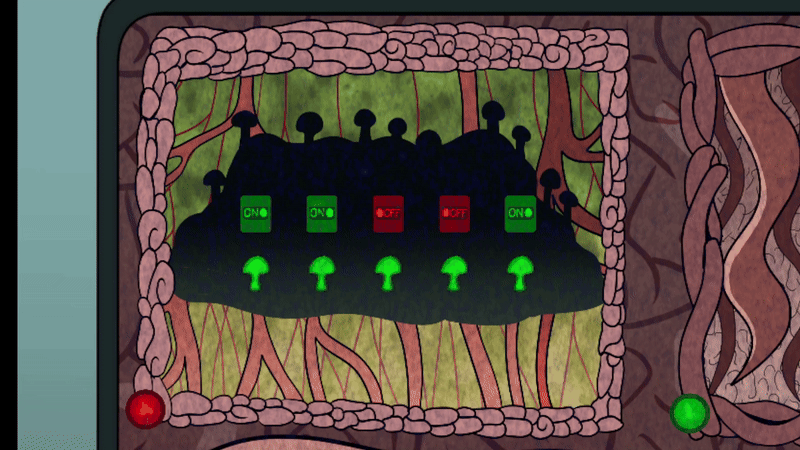On the game screen, we show a code (for example: off, on, on, off, off) and the current state of the neurons.