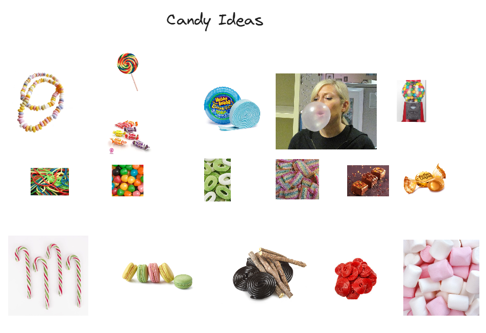 This was a really fun task. Since we were in a "Sweets & Candy" world, we wanted to use candies and sweet treats as obstacles. We made a list of all the candies we used to eat when we were younger.